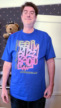 I’ve been enjoying the photos people have sent of them with the Eardrum Buzz Radio merchandise. I don’t expect much in the way of money, but I certainly do get a chuckle and warm feelings when someone makes that special effort to send me back an awesome picture. Sean F. Schulz sent a picture from within his studio and Gunnar Malmquist sent one with a fun pose and nice background. I’ve also recently added stickers and tall shirts and I hope taller people (like me!) will enjoy the designs. You can purchase mugs, totes, stickers, hoodies, long-sleeved and short-sleeved T-shirts and a few hats. You will look great and be comforted in the knowledge that in a small way you are helping share the joy I hope to spread with Eardrum Buzz Radio.